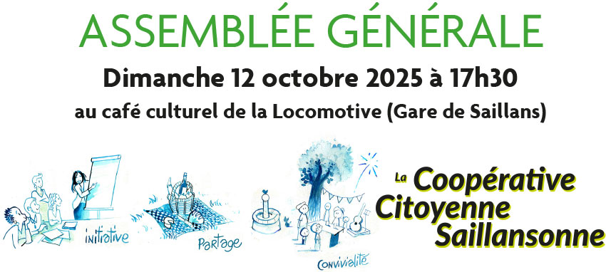 Les adhérentes et les adhérents sont invités à participer à l’Assemblée Générale annuelle de l’association qui aura lieu au local culturel de la Locomotive (gare de Saillans).